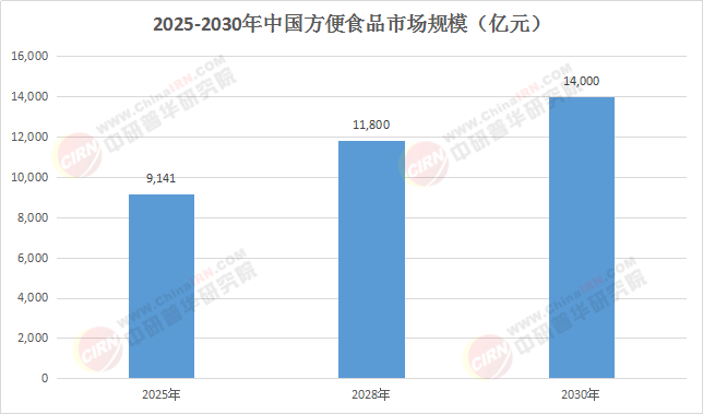 中國方便食品行業歷經40余年迭代升級,已從早期以方便面為主的單一品類,逐步轉型為涵蓋健康主食、智能餐廚、場景化解決方案的多元化產業生態。2025年行業規模突破9141億元,較2023年增長35.7%,近五年年均復合增長率達10.6%;預計至2030年,市場規模將進一步擴張至1.4萬億元,年均復合增長率提升至11.8%。這一跨越式增長背后,是健康消費革命、硬核科技賦能、政策規范引導三重引擎的協同驅動。
