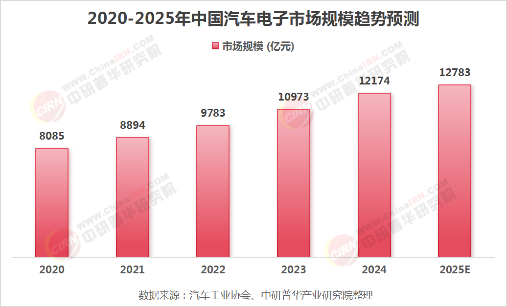 隨著汽車智能化、電動化、網聯化趨勢的加速,汽車電子在汽車中的占比不斷提高。中研普華產業研究院的《2024-2029年中國汽車電子行業發展趨勢及投資戰略預測報告》預計未來幾年,全球汽車電子市場規模將繼續保持增長態勢。在中國,新能源汽車的快速發展以及智能網聯汽車的不斷普及,將進一步推動汽車電子市場規模的擴大。到2025年,中國汽車電子市場規模有望達到12783億元,顯示出該行業巨大的市場潛力。