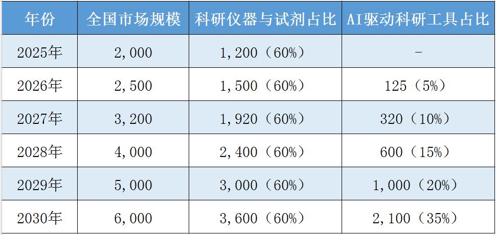 根據中研普華產業研究院《2025-2030年科研產業深度調研及未來發展現狀趨勢預測報告》預測,2025-2030年中國科研產業將迎來結構性爆發。2025年市場規模預計達到2000億元,其中科研儀器與試劑占比超60%,科研服務外包占比約25%;到2030年,行業規模有望突破6000億元,AI驅動的科研工具占比將提升至35%,跨境科研合作服務占比突破15%。這一增長由三大核心邏輯支撐: