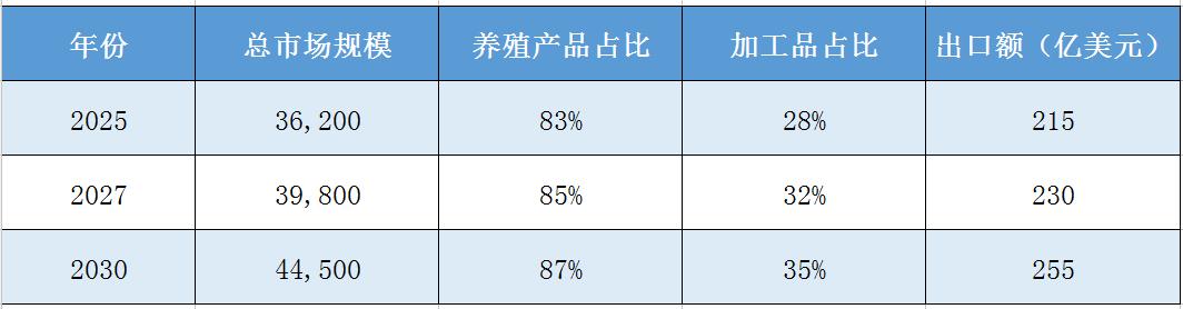 表:2025-2030年中國漁業產品市場規模預測(單位:億元)