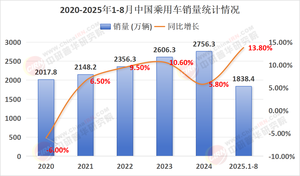 2025年1-8月銷量已經(jīng)達(dá)到1838.4萬輛,同比增長13.8%,這一顯著增長可能表明市場在年初至八月期間表現(xiàn)尤為強(qiáng)勁,或者存在其他特殊因素(如政策刺激、市場需求集中釋放等)推動(dòng)了銷量的快速增長。