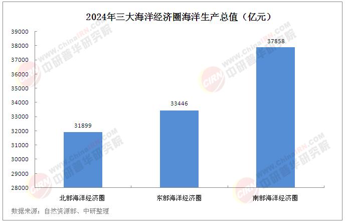 北部、東部、南部三大海洋經濟圈持續擴能。北部海洋經濟圈新舊動能轉換步伐不斷加快,東部海洋經濟圈海洋經濟一體化發展初見成效,南部海洋經濟圈((包括廣東、廣西、海南)深海開發與保護取得新進展。2024年,三大海洋經濟圈海洋生產總值分別為31899億元、33446億元和37858億元,分別比2020年名義增長33.1%、37.7%和33.3%。