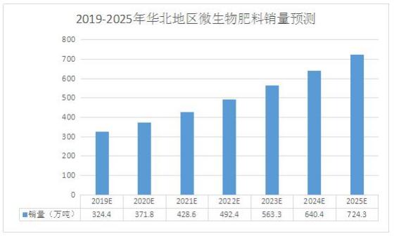 圖表:2019-2025年華北地區微生物肥料銷量預測