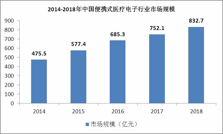 圖表:2014-2018年中國(guó)便攜式醫(yī)療電子行業(yè)市場(chǎng)規(guī)模