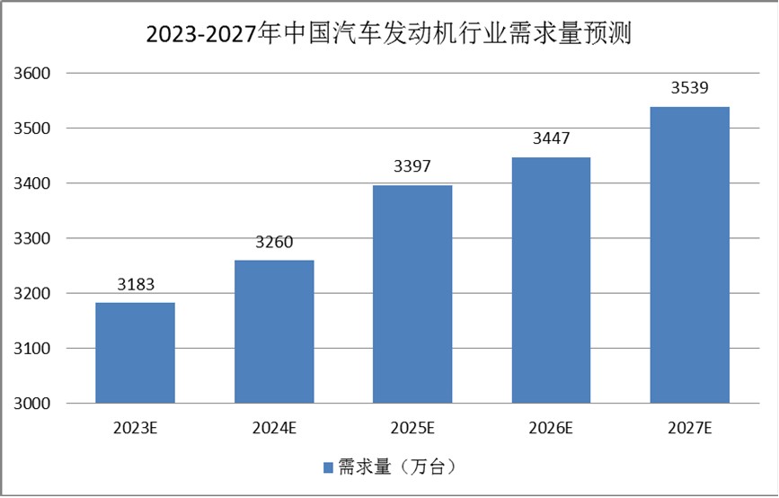 根據國內汽車行業規劃對汽車發動機行業的需求量進行預測,預計到2027年國內汽車發動機行業的需求量將達到3539萬臺。