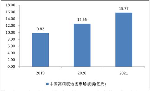 根據汽車銷量、高精度地圖滲透率、license費用等數據測算,2021年,我國高精度地圖的市場規模約為15.77億元(未包含數據更新的服務費用,下同)。2019和2020年的市場規模分別為9.82億元和12.55億元。