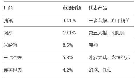 騰訊、網易、米哈游構成“三足鼎立”格局: