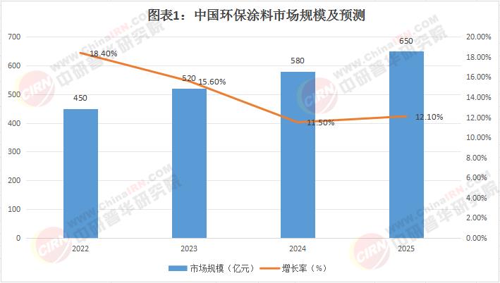 圖表1:2020-2025年中國環保涂料市場規模及預測
