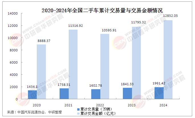 近年來,中國二手車市場在國家政策支持、消費觀念轉變及汽車保有量攀升的多重驅動下,迎來爆發式增長。中國汽車流通協會數據顯示,2024年全國二手車交易量達1961.42萬輛,同比增長6.52%,累計交易金額突破1.28萬億元。其中,新能源二手車全年交易量達112.85萬輛,同比增長47.97%,增幅遠超燃油二手車。