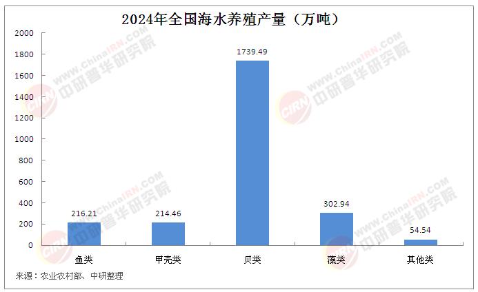 中國海水養殖歷史悠久,是水產業的重要組成部分,也是支撐國家糧食安全的重要力量。隨著人口增長與消費升級,人們對水產品的需求從“量”的滿足轉向“質”的追求,健康、安全、營養的海水養殖產品日益受到青睞。《2024年全國漁業經濟統計公報》2024年,全國水產品總產量7357.59萬噸,同比增長3.39%。其中,養殖產量6060.03萬噸,同比增長4.31%。海水產品產量3708.87萬噸,同比增長3.45%。