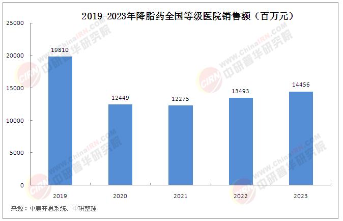 據中康開思系統顯示,2023年降脂藥國內等級醫院和零售市場銷售總額達253億元。其中,在國內等級醫院銷售額約145億元,同比增長7.1%。