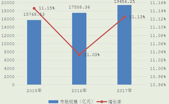 截止2017年末,根據現代農業各行業的發展規模來看,我國現代農業的市場總規模為19456.25億元,增長幅度為11.13%。